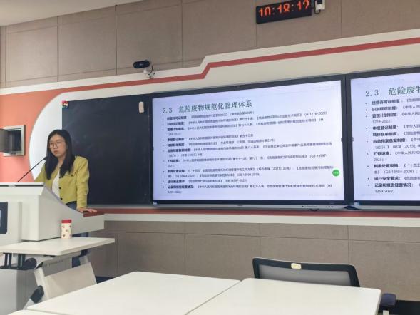 报告以“理论与实践并重,推动危险废物管理专业化发展”为核心主旨,她首先从行业背景与核心意义开篇,详细讲解了我国危险废物处理处置的最新政策、法规及相关技术手段,为在场师生呈现了危险废物处理与处置的典型工艺处理与发展动态。