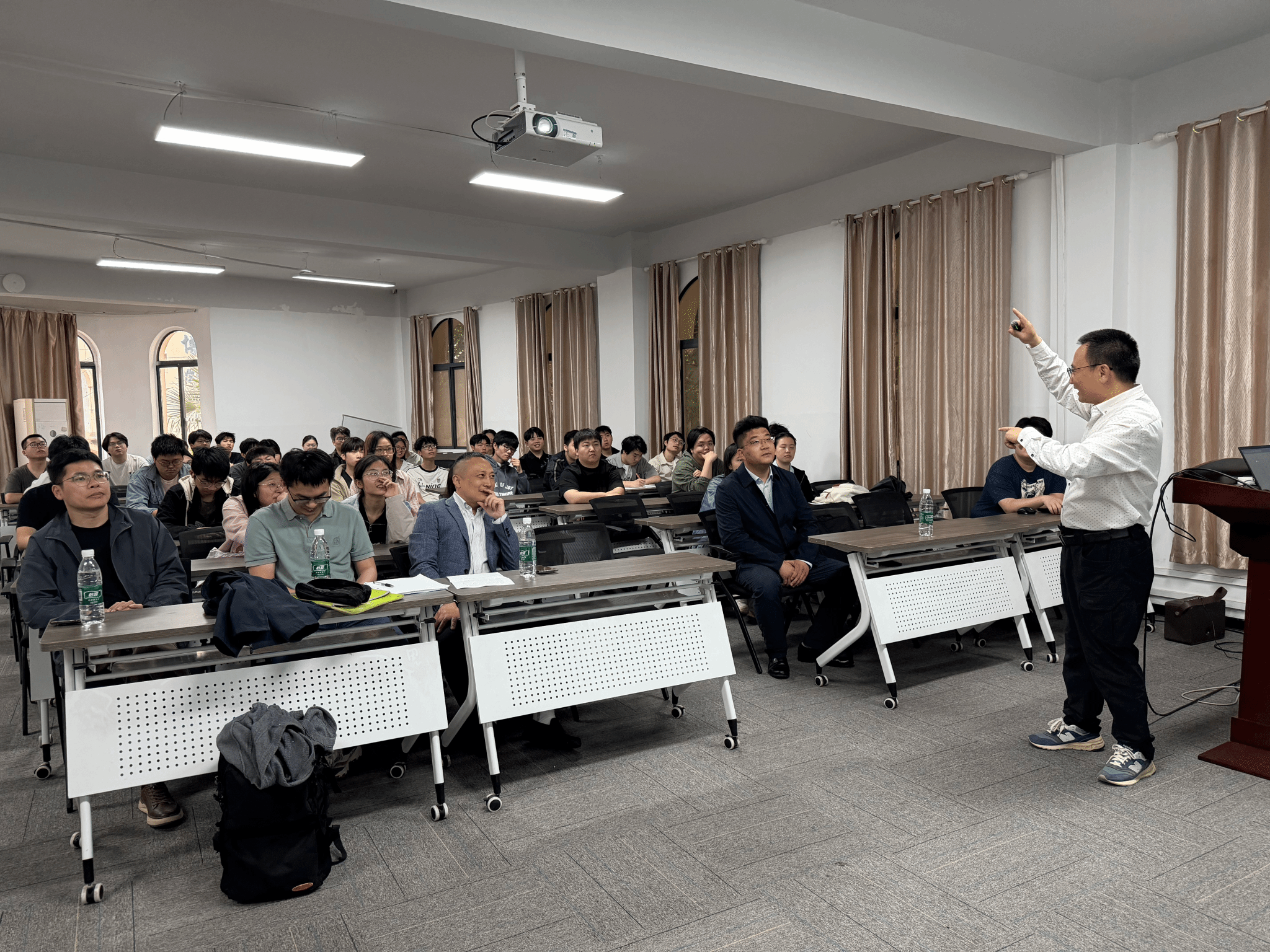 密切相关的专业,他结合近年考研报考政策、复试流程及录取情况,为在场学生提供了清晰、务实的报考指引与升学建议。宣讲内容信息量大、针对性强,现场气氛热烈,学生互动踊跃。