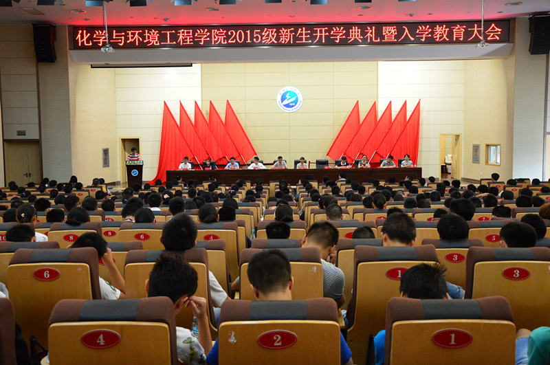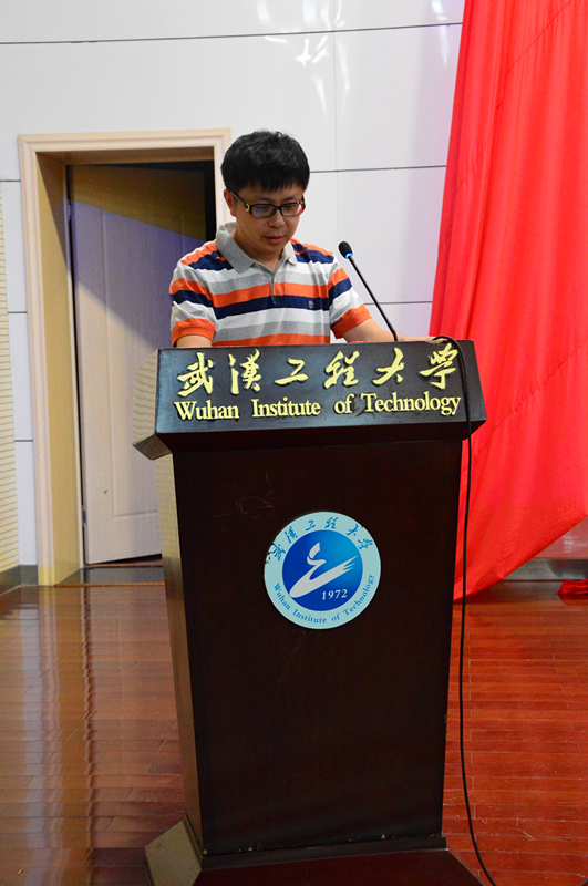 在校学生代表、2013级工业分析2班余志鹏同学和新生代表、2015级环境工程4班黄中蕙同学分别发言。