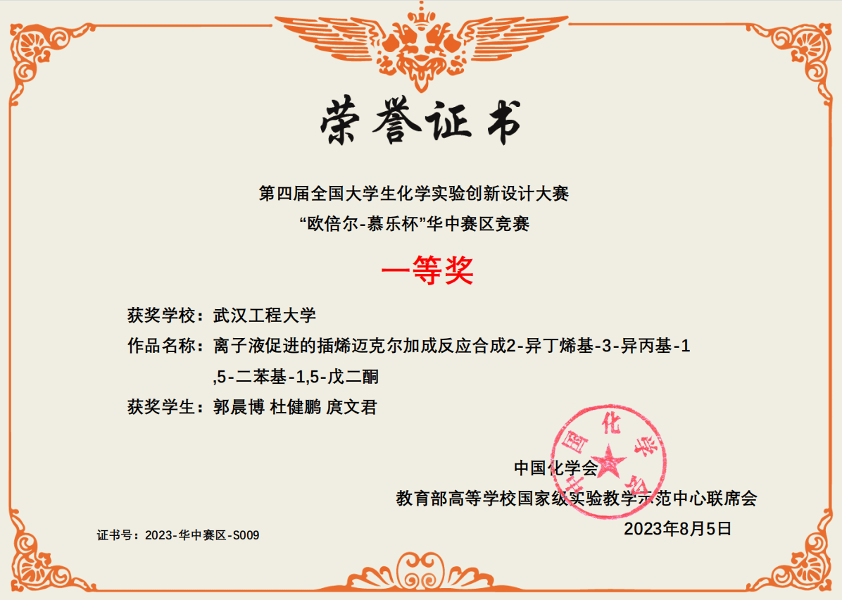 应用化学专业郭晨博、杜健鹏、庹文君三名本科生组成的“新创实验”队再创佳绩,喜获全国二等奖!