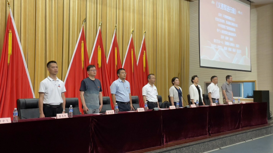 在庄严的国歌声中,典礼正式拉开帷幕,所有与会人员起立。