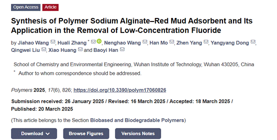 应用化学专业 2022 级本科生王佳豪以第一作者身份在高分子化学领域国际学术期刊 《Polymers》(JCR Q1区)上发表一篇题为“Synthesis of Polymer Sodium Alginate–Red Mud Adsorbent and Its Application in the Removal of Low-Concentration Fluoride” 的学术论文,好色视频
